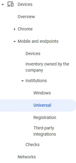 - Devices $\rightarrow$ Mobile & endpoints $\rightarrow$ Settings