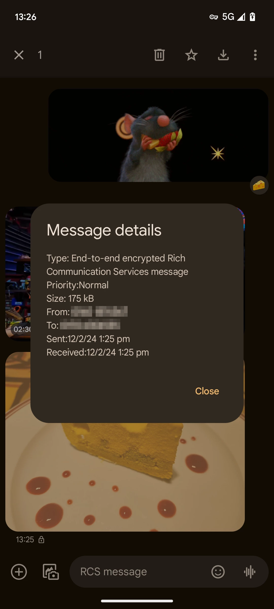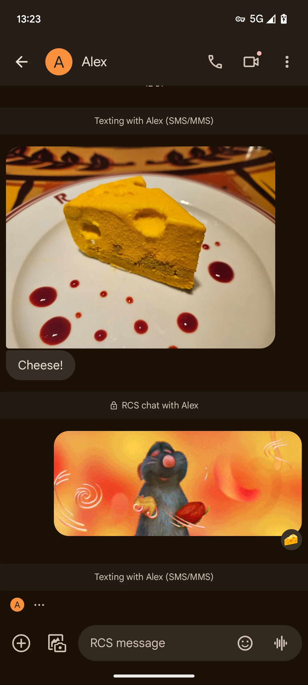 | If the other person does not have RCS, SMS/MMS is used | As soon as RCS is available or no longer possible, this will be displayed + Typing Indicator and Emoji Reaction |
