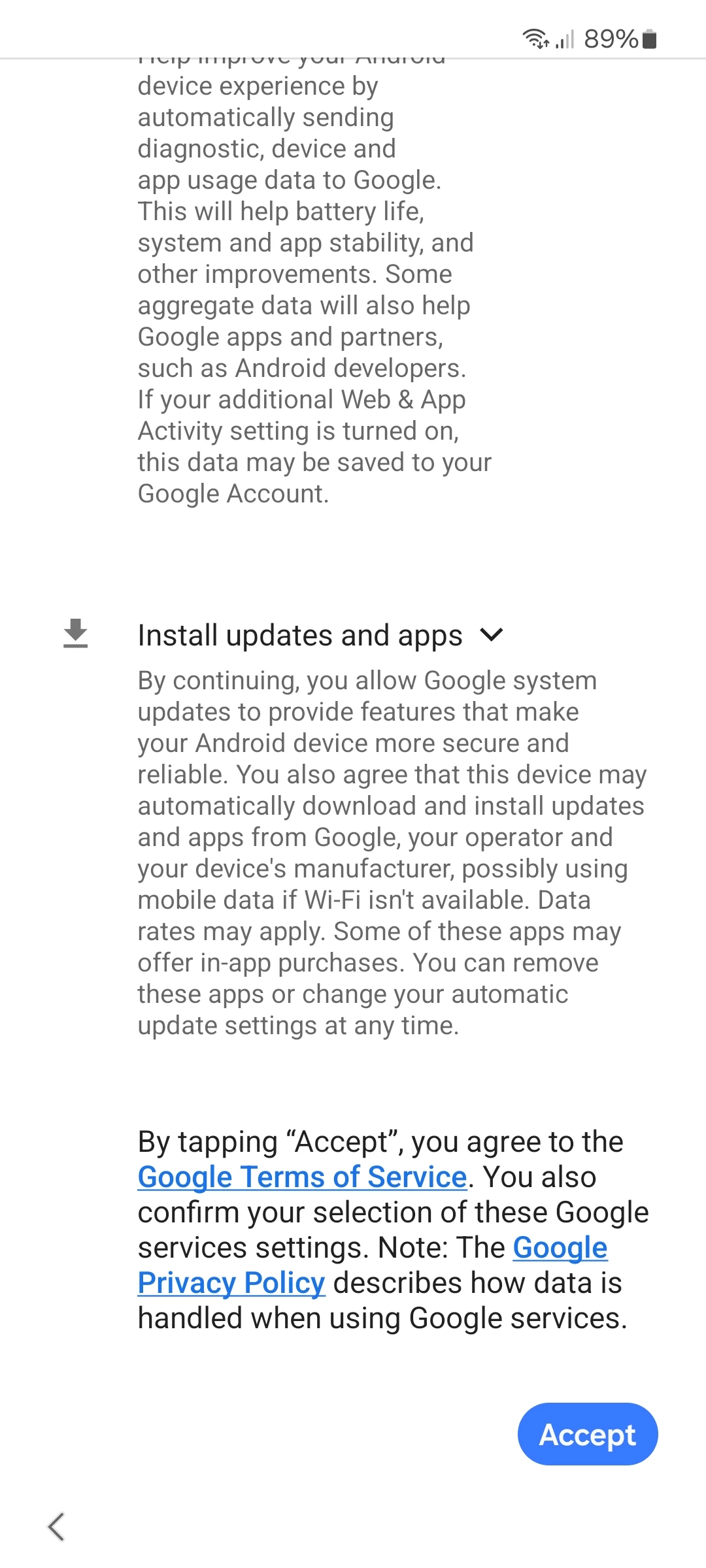 Hi. It is new that you HAVE to Disagree/Allow Google Services on Samsung Android 15, enrollment?