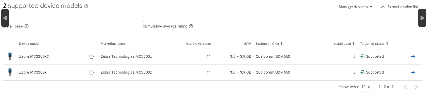 I am facing an error for a several months in the MC33ax from Zebra. I have an in-house app that was uploaded to Play Console, to be further linked to Microsoft Intune. The MDM is managing corporate devices by providing the app to many ones, as MC94, MC93 and MC33ax. However, everything works fine for 93 and 94, I can see the app in the Play Store, which is not happening to 33ax.