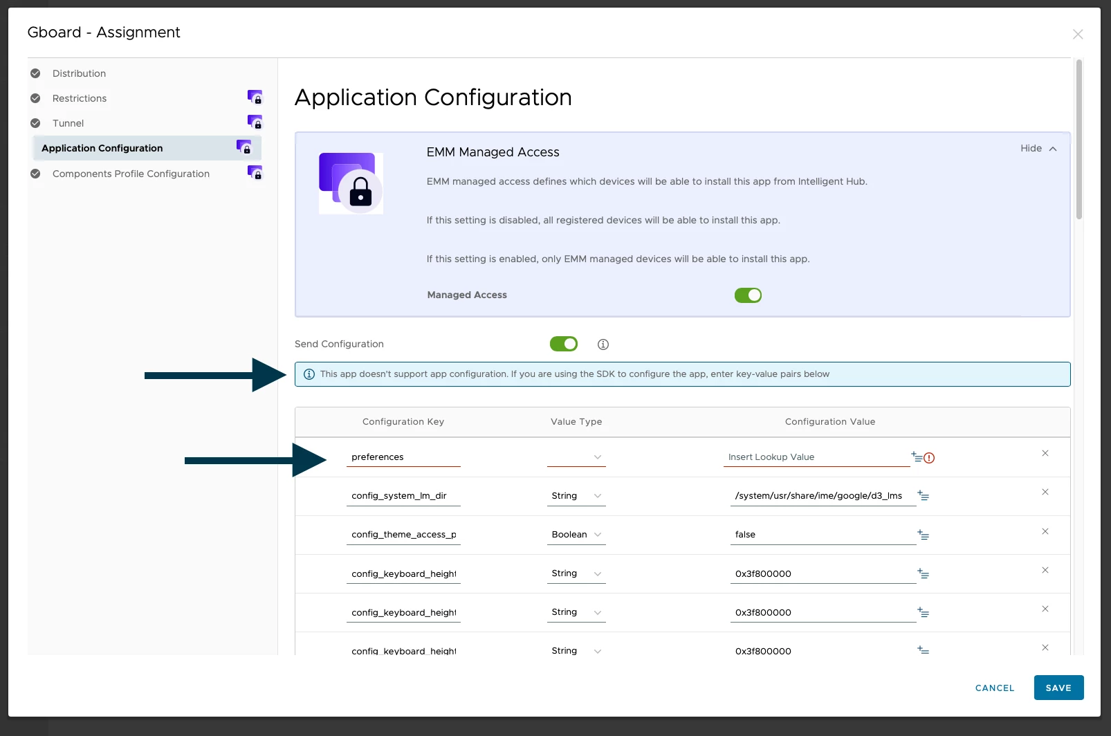 Managed App configs are still present on Chrome & ServiceNow Now Agent, hence why we believe this is not an MDM Console issue.