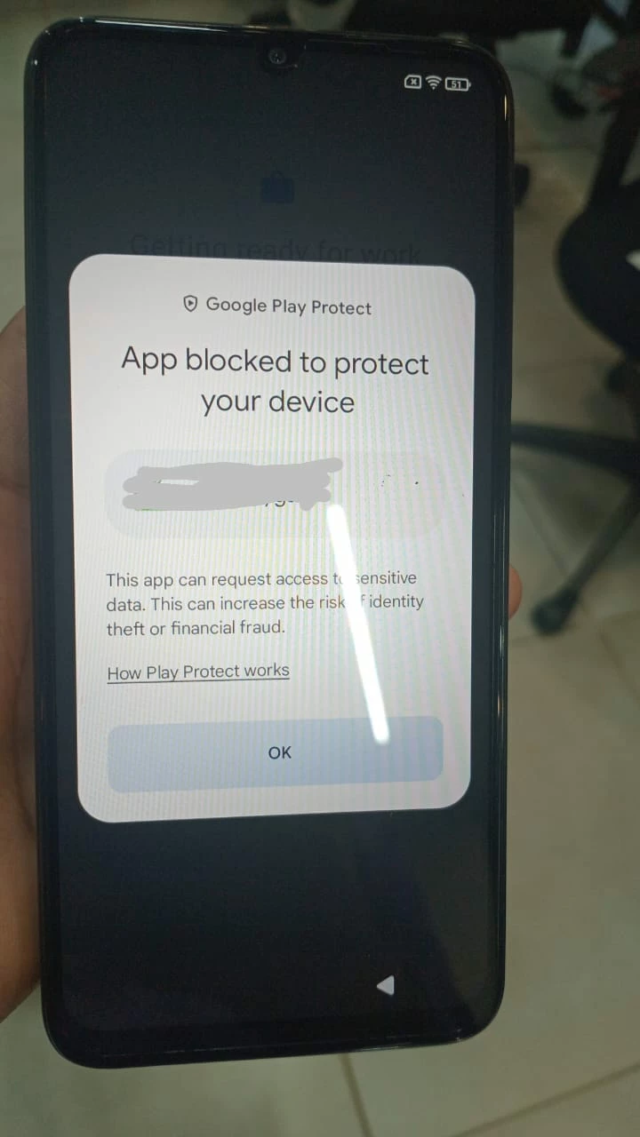 - The app is properly signed, and provisioning works at the system level, but Play Protect blocks the app with the message “App blocked to protect your device.”