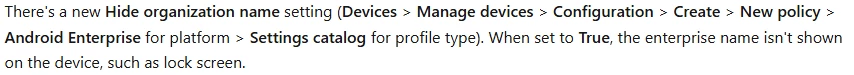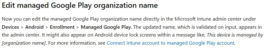 we built our Managed Google Play connector in Intune like three years ago with our company name as organization name.