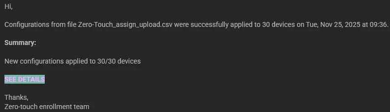 Is there currently an issue uploading a bulk .csv file to ZeroTouch?