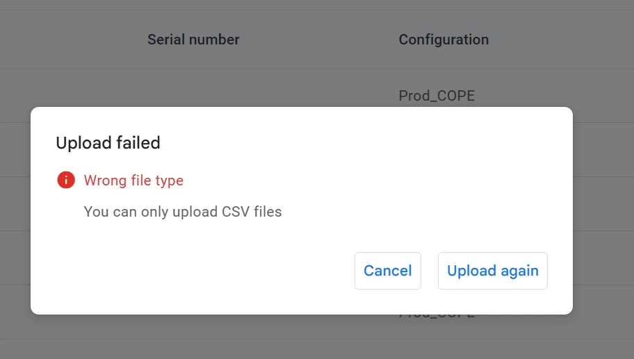 I downloaded the sample .csv file then updated it with my data, then uploading it again to the portal as is without changing the name or file extension as seeing above, yet its giving me an error.