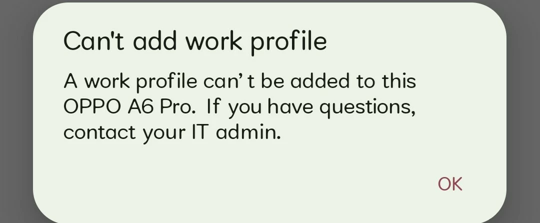 Work profile creation on OPPO A6 PRO
