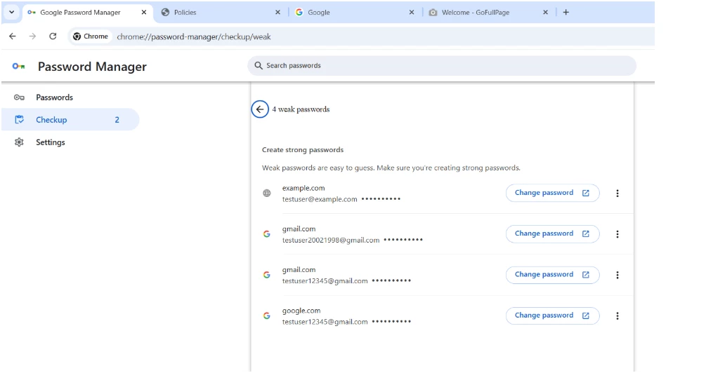 1.The compromised password entry is correctly flagged under "Compromised passwords"
