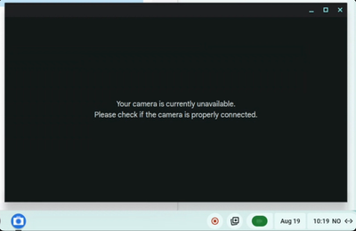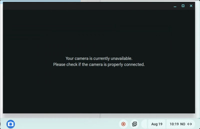 After a hard restart (power off/on) Chrome OS says the camera can not be used.