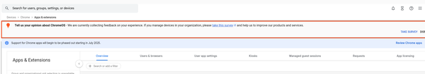 It’s easy! The next time you log in to manage your fleet, look for the survey announcement banner within the ChromeOS section of the Google Admin Console.