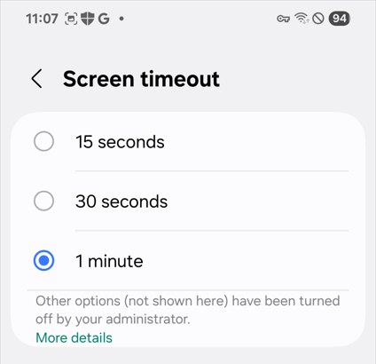 I tried to change the global policy to 5 mins, but it did not worked, and the maximum lock screen time is still one minute.