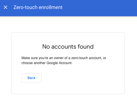 I've logged into Workspace.google.com for Acme, Inc. Gone to Devices, Mobile & Endpoints, Settings, Enrollment, Manage Zero Touch devices, Link, log in using AZTE user and get the rather lovely: