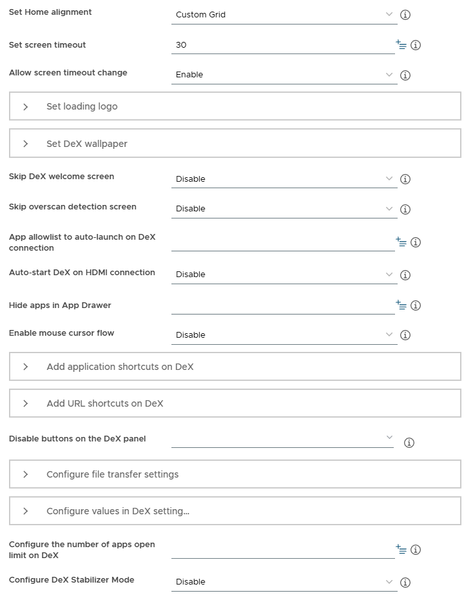 I tested DeX customization via the Knox Service Plugin quite a while ago. There is definitely a good selection of settings.