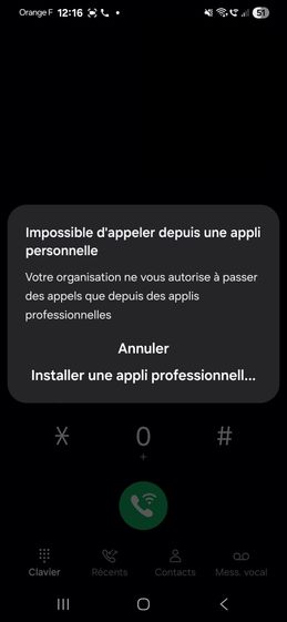 "Can't call from a personal app" - Your organisation only allows you to make calls from work apps.