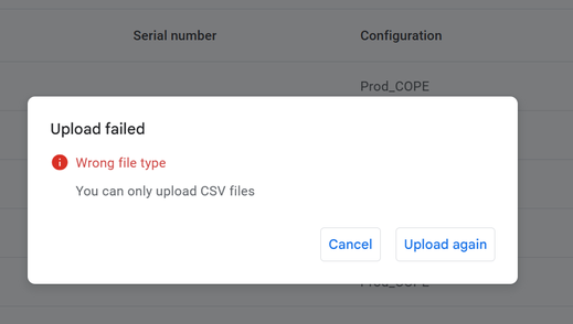 Unable to upload bulk CSV file to ZeroTouch
