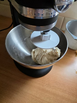 On the KitchenAid, use the dough hook on speed 2 for 8–12 minutes, depending on the flour quantity.