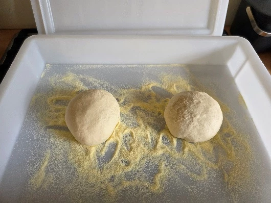 Once the balls are ready, place them in your dough box or plastic containers.