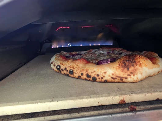 The stone in your pizza oven should be around 350–400 °C (660–750 °F).