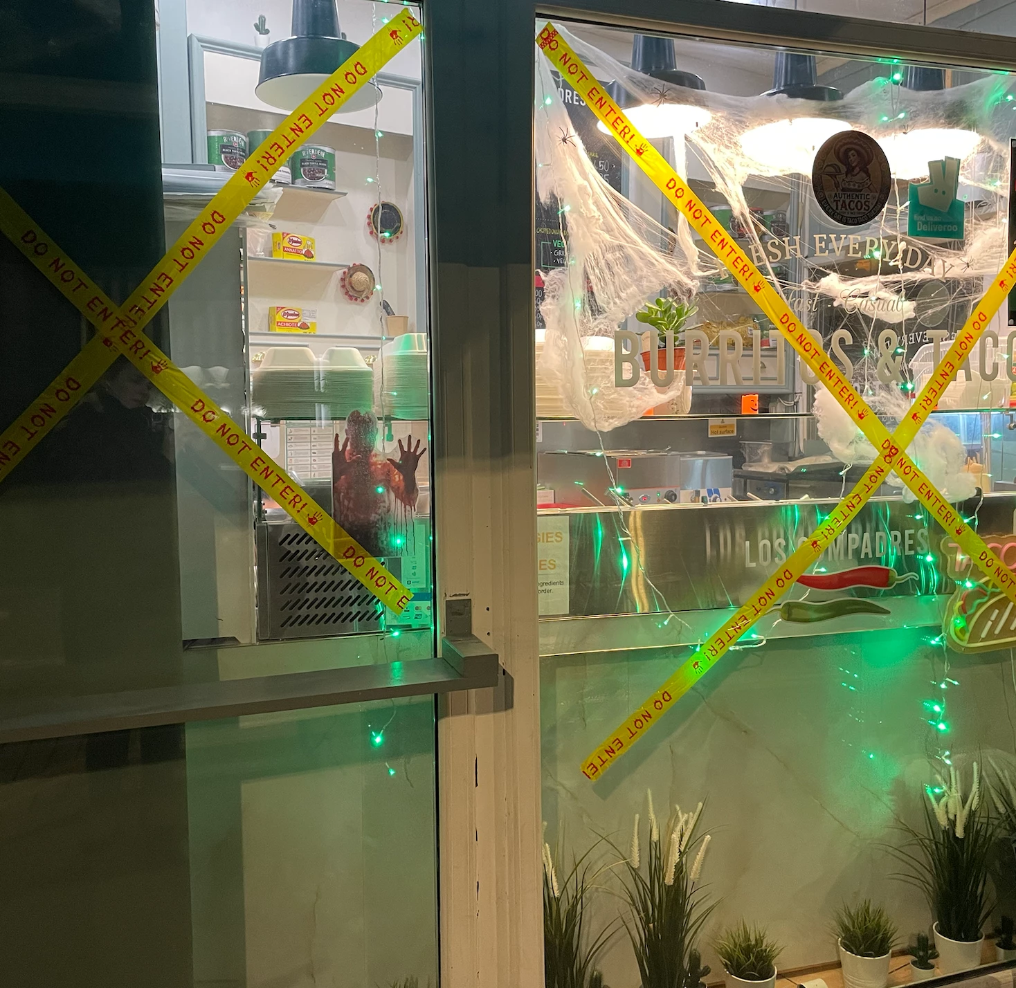 Celebrating Halloween is pretty new in the UK but, every year, it’s fun to see my local high street turn into a spooky place: from the cemetery ghoul in the estate agent window to the cute pumpkins at the locksmiths - even the corner burritos and tacos shop where you have to order from the booth plays along by plastering a “do not enter” yellow tape on its windows!